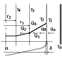 – радиус внутренней (холодной) поверхности,
