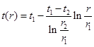 Будем предполагать квазистационарное распределение температур в реакционной массе. Это справедливо, если прогрев происходит достаточно медленно ( ), что доказано выше. В этом случае зависимость температуры от радиуса цилиндра при заданных граничных условиях 1 рода (температура на внешней и внутренней поверхности) выражается формулой