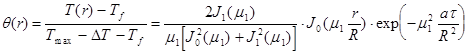 После этого, по условиям процесса, температура у стенки аппарата поддерживается постоянной и равной . Изменение температуры на оси цилиндра при граничных условиях 1 рода определяется формулой