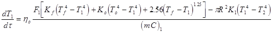 Аналогичным образом можно записать тепловые потоки для нагревателей печи и воздуха, заполняющего печь.