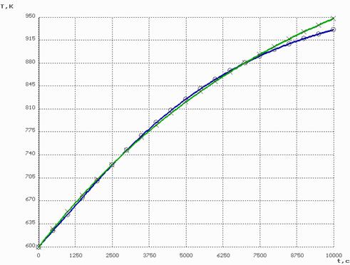 , . Задаваясь давлением в аппарате, находим температуру кипения. Время прогрева получим, интегрируя приведенную выше систему до момента, когда температура сравняется с температурой кипения магния при заданном давлении в аппарате.