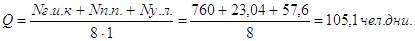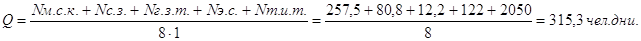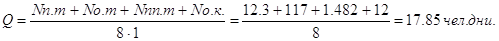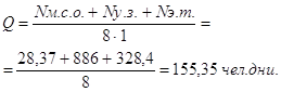 б) нормативные трудозатраты (Q): Q=44,4 чел. дн;