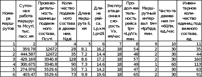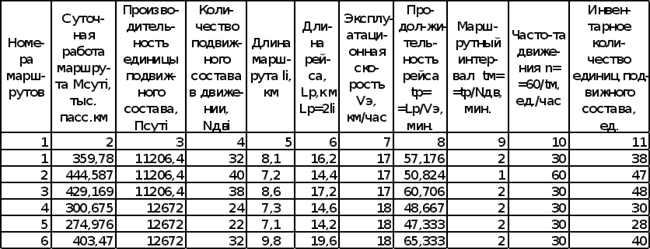 Количество подвижного состава в движении на каждом маршруте определяется по формуле