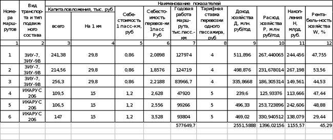 Себестоимость перевозки пассажиров и рентабельность хозяйства определяется для сравниваемых видов транспорта в таблице 5. В эту же таблицу сводятся результаты расчетов капиталовложений.