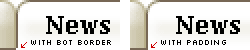 Но и этот вариант нас не устроит, так как левая картинка теперь отодвинута от левого края закладки на 9 пикселей добавленного отступа. Теперь, когда внутренние края левого и правого «дверных проемов» стыкуются друг с другом, нам больше нет надобности держать левую картинку впереди. И мы можем изменить очередность фоновых картинок, применив их к противоположным элементам. Мы также должны поменять картинки и для текущей закладки: