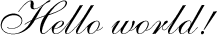 Выберем для нашего приветствия миру самый подходящий шрифт, скажем, ShelleyAllegro. Мы считаем, что хорошо известный в среде дизайнеров ShelleyAllegro настолько блистателен, что легко покорит сердца миллионов, когда мы с его помощью скажем "Hello!". По нашим сведениям этот шрифт доступен лишь на 1,65 % компьютеров во всём мире. Потому, потратим чуть-чуть времени и создадим изображение со все тем же текстом "Helloworld!". Любой пользователь любого броузера, в котором не отключен показ изображений, увидит наше приветствие, набранное шрифтом ShelleyAllegro даже на тех компьютерах, где он не установлен.