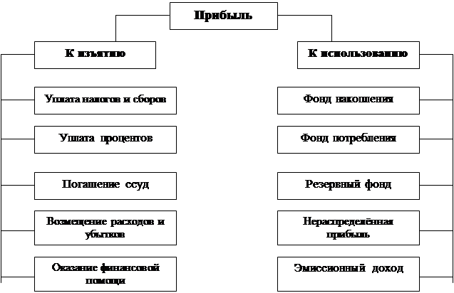 За счёт прибыли формируется целая совокупность фондов денежных средств. На схеме показаны два основных канала участия прибыли в распределительном процессе, определяющих пропорции, в которых прибыль изымается и используется самим предприятием.
