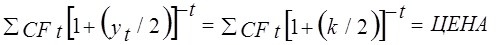 — денежный поток, который будет получен в период t (t=1для денежного потока, который будет получен через 6 месяцев, t=2для денежного потока, который будет получен через 12 месяцев, и t=3 для денежного потока, который будет получен через 18 месяцев); yt