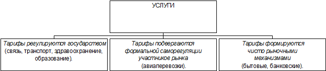 На формирование цен услуг немалое влияние оказывает также мера их внерыночного регулирования. Соответственно подходы к установлению тарифов на услуги прямо зависят от того, к какой из трех перечисленных выше групп эти услуги относятся [3, с. 328].