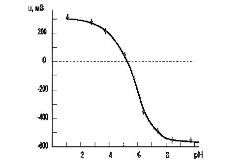 и, соответственно усиливает отрицательный заряд на поверхности воды. В кислой среде происходит снижение и последующая инверсия поверхностного потенциала. Величину рН, соответствующую нулевому потенциалу поверхности воды (5,4), назовем точкой нулевого заряда (ТНЗ).