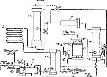 (трубы высокого давления). Азото-во до родная смесь входит в конденсатор через верхний коллектор 2