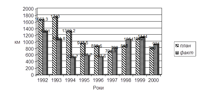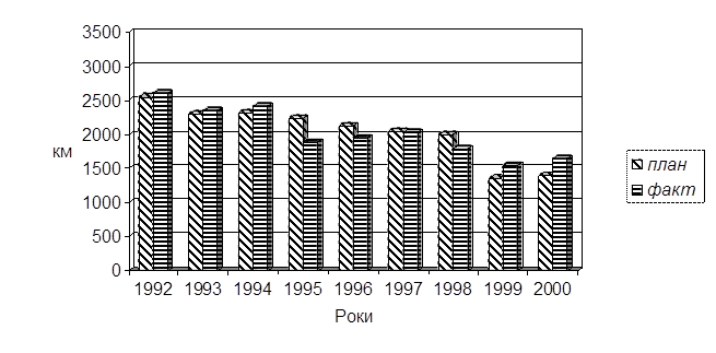 Внаслідок цього з 1992 по 1997 рік обсяги вантажних. перевезень, що приносять основні доходи галузі, зменшилися в 2,5 раза, пасажирських - на третину. За останній час майже в 10 разів скоротилися темпи оновлення основних виробничих фондів. Все це призвело до значного погіршення стану виробничо-технічної бази залізничного транспорту, згортання програм його економічного та соціального розвитку, створює суттєву загрозу надійному та безпечному функціонуванню залізниць.