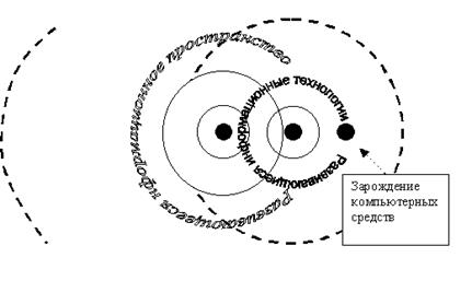 На рисунке 2 схематически показано, что развивающееся информационное пространство, достигнув критического объема породило информационные технологии, которые побудили еще большее развитие информационного пространства, так и развивающиеся информационные технологии явились закономерным толчком зарождения и дальнейшего стремительного развития компьютерных средств.
