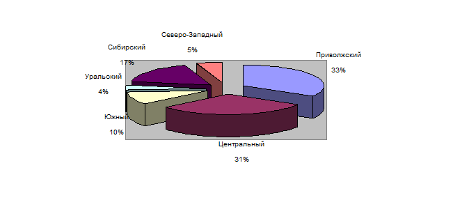 На рис.1.1 показана доля основных федеральных округов – производителей молочных консервов за 2003 год.
