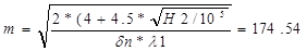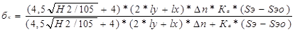 b = ( 4.5 * Ö Н2 / 105 + 4 ) * p * R*R,