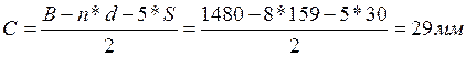 n = B/(d + S) = 1480/(159 + 30) = 7,8 ≈ 8 шт.