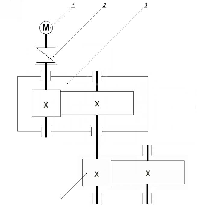 3 – одноступеневий горизонтальний циліндричний шевронний редуктор;
