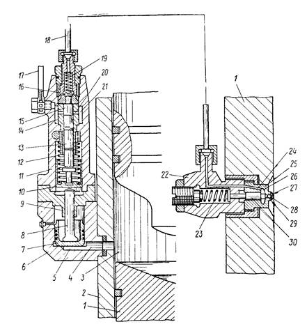 к седлу наконечника, отсекает напорный трубопровод от подплунжерной полости. Напорный трубопровод с помощью накидной гайки крепится к корпусу игольчатой форсунки. Форсунка состоит из корпуса 22