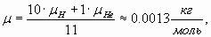 Для Солнца . Полагая, что на десять атомов водорода приходится один атом гелия [2], расчет средней молярной массы элементарного объема звездного вещества, в отличие от той же [2], проведем как: