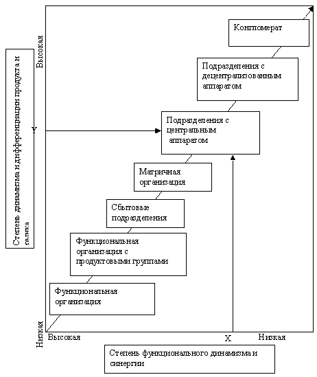 В процессе интегрирования процесса разработки политики и ее осуществления в создаваемых подразделениях, ориентируемых на специализированные рынки, бизнес-единицы приобретают способность действовать решительно и эффективно. Сбыт, закупки, производство и НИОКР могут быть оптимально приспособлены к политике маркетинга. В свою очередь, политика маркетинга может эффективно использовать возможности, следующие из функциональных действий. Если говорить об инновации, то технологические «толчки» и рыночные преимущества соединяются в бизнес-единице, которая эффективно их синтезирует.