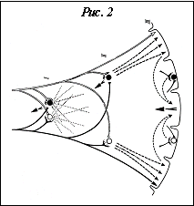 Аналогии сетевых структур нейросетей и телекоммуникационных технологий, отражающих суть их онтологического конструктивно-деструктивного императива, можно проследить хотя бы на примере подобия их топологической организации. На рис. 1 изображена упрощенная структура проекта глобальной сети универсальной обработки сообщений Intuity. Видно, что ее макро-уровень подобен соответствующему принципу организации, например, концептуальной модели кортикального замыкания очагов индифферентного и безусловного возбуждения с участием ретикулярной формации ствола мозга и ассоциативных областей неокортекса по П. К. Анохину 36 (рис. 2).