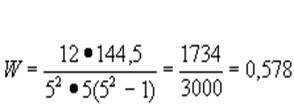 Коэффициент W, подобно r , принимает значения от -1 до +1 и рассчитывается по формуле: