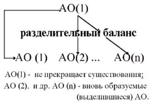 Выделением общества признается создание одного или нескольких обществ с передачей им части прав и обязанностей реорганизуемого общества без прекращения последнего (ст.19 ФЗ "Об АО"). При выделении из состава АО одного или нескольких обществ к каждому из них переходит часть прав и обязанностей реорганизованного в форме выделения АО в соответствии с разделительным балансом.