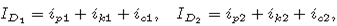 ID1 - ток диода D1; ID2 - ток диода D2.
