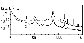 Исследование спектральных характеристик сигнала электрооптического светорассеяния отличается от исследования флуктуаций света, рассеянного коллоидными частицами тем, что в спектре сигнала появляются специфические стационарные пики на частоте ориентирующего поля и на кратных ей частотах. Наличие этих пиков связано с ориентацией частиц под действием поля. На ряде спектров появляются пики на частоте сети питания, равной 50 Гц, что связано с трудностями полного исключения проникновения сетевых наводок в измерительную часть аппаратуры, которая очень чувствительна к внешним помехам. Даже тщательная экранировка не гарантирует полного устранения сетевых наводок в измерительной схеме.