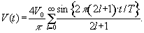 Периодические прямоугольные колебания можно рассматривать как суперпозицию синусоидальных колебаний. Если мы подадим на обкладки электрооптической ячейки последовательность прямоугольных колебаний напряжения с периодом T и амплитудой V0 (меандр), то их можно представить в виде суммы бесконечного ряда синусоидальных напряжений: