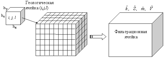 Наиболее простой способ задания средних фильтрационных свойств ячейки основан на средневзвешенном по мощности или объему объекта определении проницаемости фильтрационной ячейки.