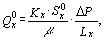 поток жидкости в направлении оси Ох через боковую поверхность , возникающий за счет перепада давления P=PNx-P0 на гранях параллелепипеда, перпендикулярных оси, выражается формулой (1). Кх - средняя проницаемость в направлении Ох.