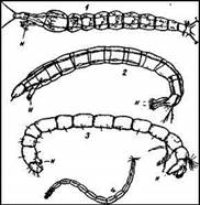 Личинки некоторых видов долгоножек живут в воде и являются довольно частыми объектами пресноводных экскурсий. Все они обладают червеобразной формой, имеют ясно выраженную голову и несут на теле различные придатки: ложные ножки, дыхательные трубочки, трахейные жабры и пр., придающие иногда их обладателям весьма своеобразный вид.
