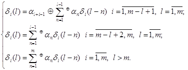 Просуммировав по модулю два правые и левые части равенства (2.6.3), получим, что полином будет определяться как