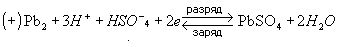 Общая токообразующая реакция в аккумуляторе: Таким образом, при разряде аккумулятора расходуется серная кислота, образуется вода, а на обоих электродах – сульфат свинца. При заряде процессы протекают в обратном направлении.