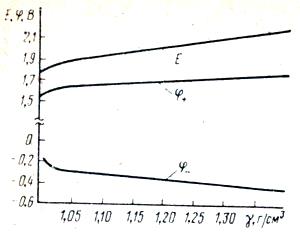 График зависимости ЭДС и потенциалов электродов от плотности электролита: