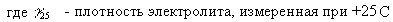 Если измерения проводились при температуре Т, отличной от +25°С, то необходимо откорректировать показания плотности по формуле: Омическое сопротивление батареи является суммой сопротивления электролита, сепараторов, активной массы, решеток и соединительных элементов . Под сопротивлением электролита подразумевается сопротивление той его части, которая находится между электродами. Таким образом, можно записать, что общее оммическое сопротивление батареи при разряде равно: