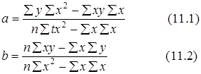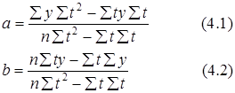 является коэффициентом регрессии, определяющим направление развития. По методу наименьших квадратов находим a