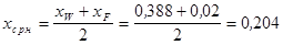 где средние значения состава паровой фазы рассчитываются аналогично жидкой фазе и равны: