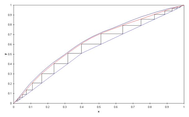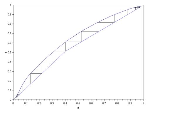 Суть этого метода сводится к построению ступеней на диаграмме y - x