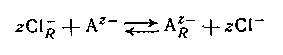 между анионным лигандом А и обменником в хлоридной форме. Большинство анионитов является несколько неустойчивыми смолами с высоким молекулярным весом, но на практике также применяются жидкие амины с умеренно низким молекулярным носом.