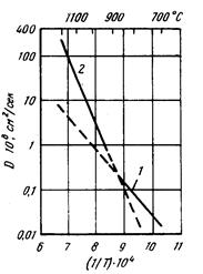 Рисунок 2-Зависимость коэффициентов диффузии кислорода от температуры: