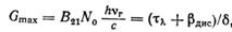 где B21 — коэффициент Эйнштейна; δ— отношение потерь (τл + βдис) к максимальному усилению Gmax.