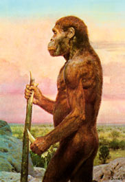 Так мог выглядеть австралопитек, один из возможных предков человека, живший около трёх миллионов лет назад. Рисунок З. Буриана.