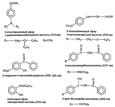 Рис. 4. Вещества, поглощающие ультрафиолетовое излучение.
