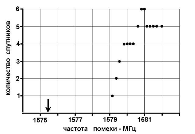 3. Наибольшее воздействие на приемник оказывает организованная помеха в диапазоне частот от 1576МГц до 1579 МГц.