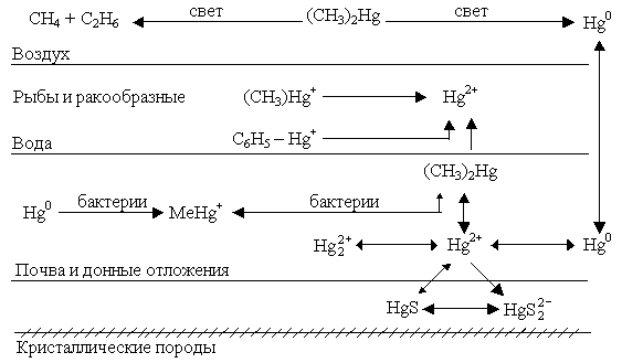 Рис. 5.1. Упрощенная схема круговорота ртути в окружающей среде